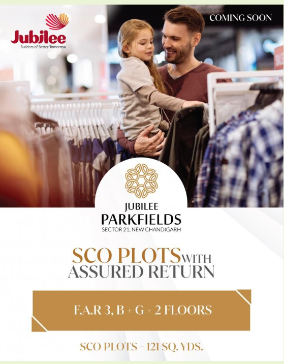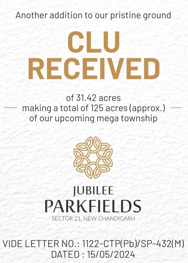 Jubilee Parkfields is a new project by the Jubilee Mohali, located in New Chandigarh, Sector 19,20 and 21. It will offer a mix of residential plots, Commercial plots and independent floors. The Punjab government has approved a CLU (Change of Land Use) for 125 acres of land. The residential plots will range in size from 200 to 500 square yards in a gated mega society.